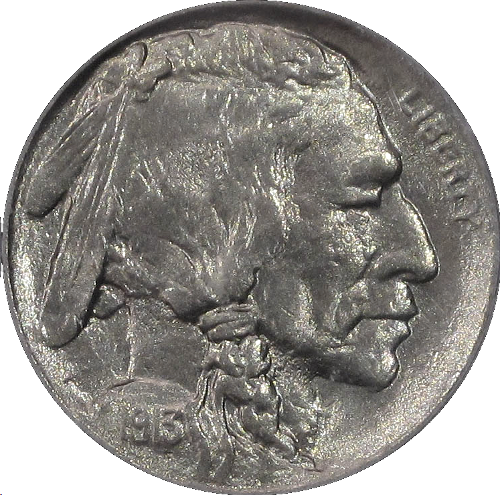 James Earle Fraser's Buffalo nickel ran from 1913 to 1938: a composite Indian portrait on one side, a bison named Black Diamond from the Central Park Zoo on the other. The date wore off quickly on circulated examples, producing hundreds of thousands of dateless coins. Key varieties include the 1916 doubled die, the 1918/7-D overdate, and the 1937-D "three-legged" bison, where an over-polished die removed the front leg. The series ended when the Jefferson nickel took over; Fraser's design came back in 2006 on the American Gold Buffalo.